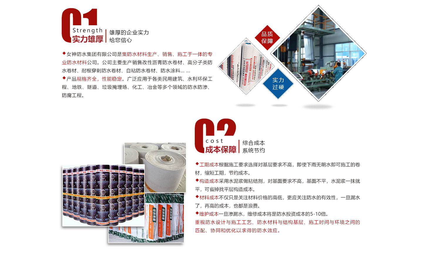 安徽女神建材科技集團有限公司是集防水材料研發、生產、銷售、施工為一體的綜合性防水材料集團公司。我公司旗下有多條大型一次成型生產線:SBS改性瀝青防水卷材,DTM聚酯復合高分子防水卷材,非瀝青基高分子防水卷材,PVC,TPO高分子防水卷材等生產線。我公司秉承“創新發展、實惠用戶”為宗旨,確保生產材料基礎上推出“共享生產廠家”,為開發商、建筑商節約成本為理念,新理念受到用戶企業集采時一致好評和認可。在互聯網時代,我公司將以互聯網“共享”為發展理念,為開發商、建筑商、防水企業提供的產品,真正讓用戶企業達到巨大...